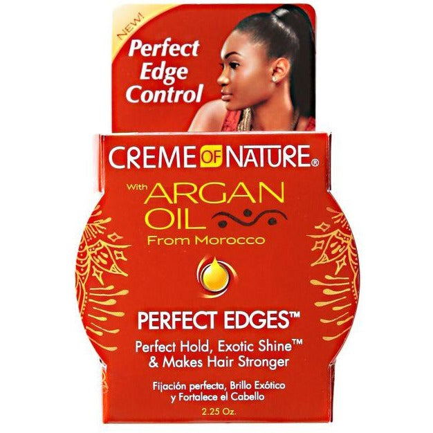 Creme of Nature with Argan Oil Perfect Edges hair gel infused with Argan Oil from Morocco controls and holds down edges, while moisturizing and adding Exotic Shine to the hair. This nutrient- rich formula makes hair stronger and gives superior hold without flaking. Perfect for creating sleek, smooth styles, ponytails, sculpting and styling the hair. Great for natural & relaxed hair!